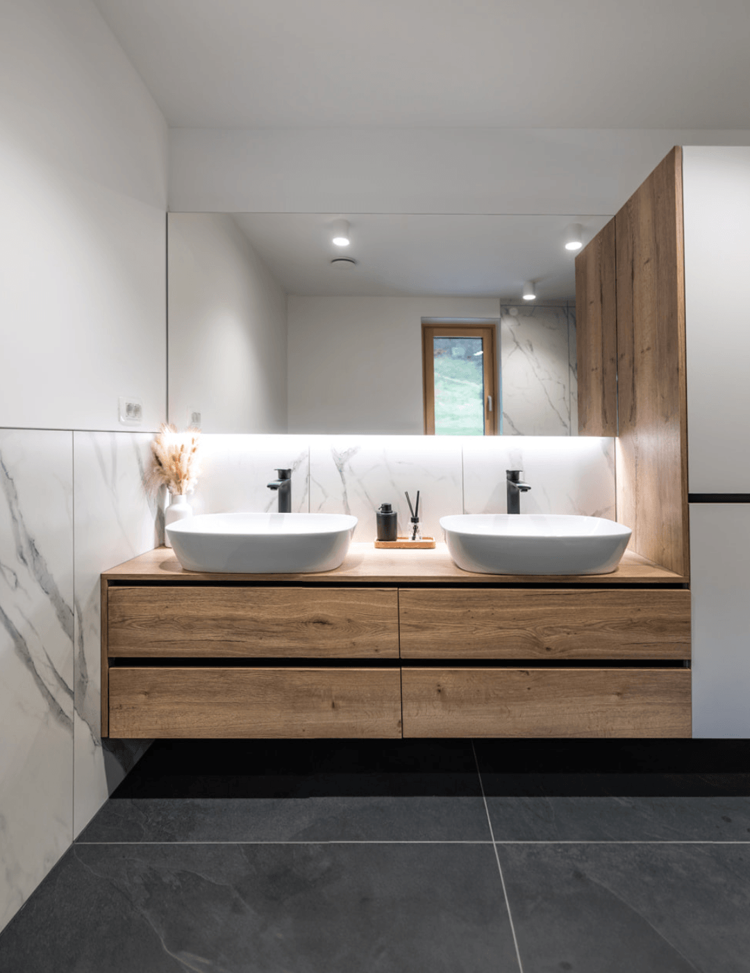 Kopalnica ni več le utilitaren prostor. Postaja prostor sprostitve, estetike in premišljene funkcionalnosti. V Mizarstvu Šporar izdelujemo kopalnice po meri, ki so prilagojene vašemu prostoru, navadam in življenjskemu slogu.