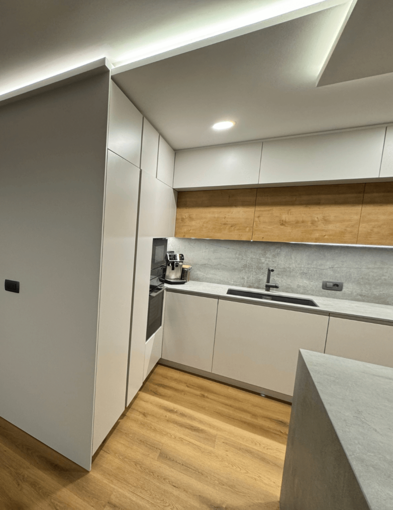 Kuhinja po meri omogoča popolno prilagoditev prostoru in načinu uporabe. Vsak dom ima svoje posebnosti – različno postavitev, dimenzije in navade uporabnikov. S kuhinjo po meri se izognete kompromisom, ki so pogosti pri tipskih kuhinjah, in ustvarite prostor, ki je hkrati funkcionalen, pregleden in estetsko usklajen.